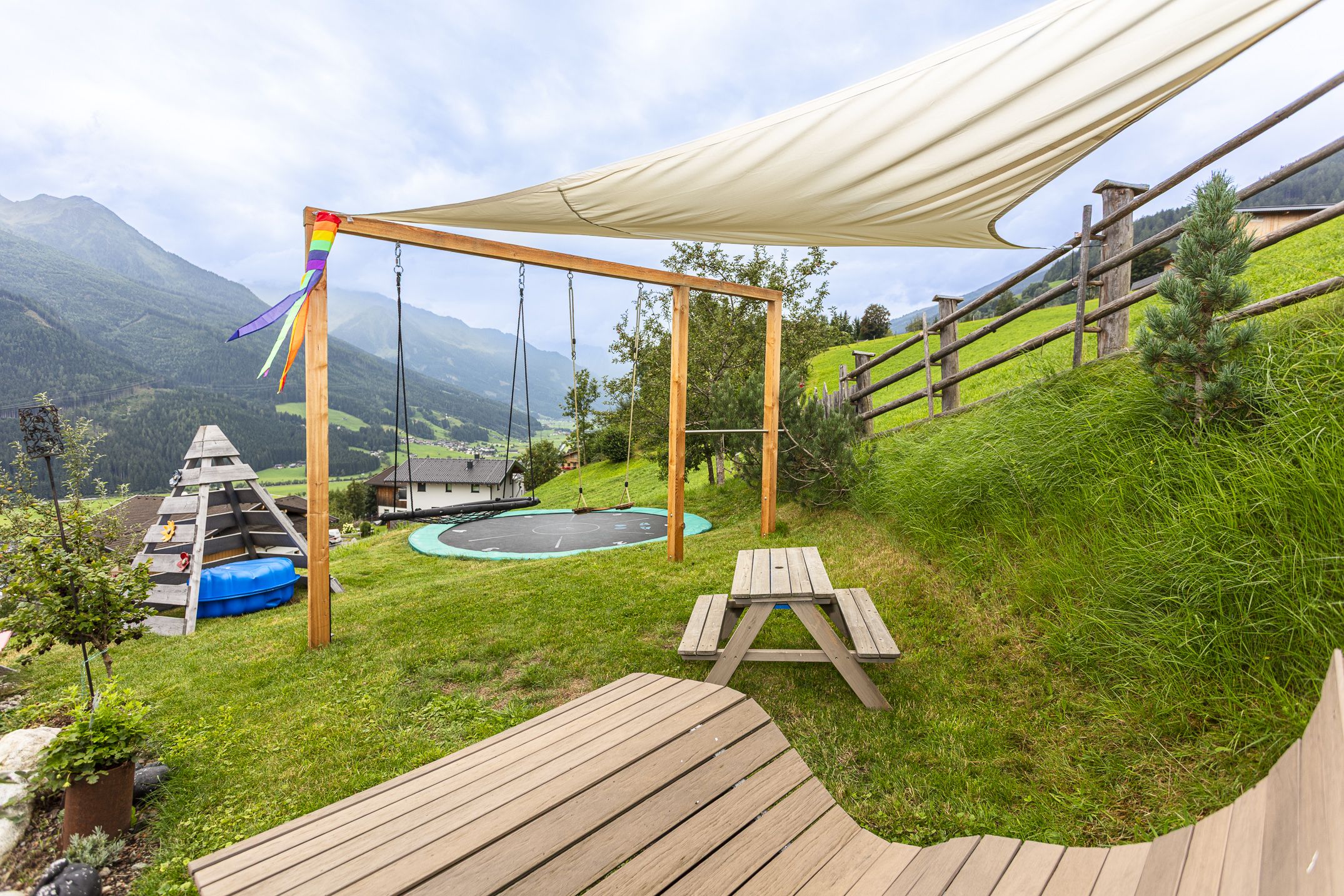 Vom Balkon genießen Sie einen einzigartigen Blick auf die Hohen Tauern. Im Garten sorgen Sonnenliegen, Grillplatz, Spielplatz und Trampolin für Erholung und Spaß für Groß und Klein. Im Erdgeschoss stehen ein praktischer Abstellbereich für Ski, Fahrräder oder Wanderausrüstung sowie eine eigene Sauna für entspannte Stunden nach einem aktiven Tag zur Verfügung.